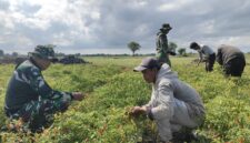 Disela-sela Pengerjaan, Personel Satgas TMMD Kodim 1426 Takalar Bantu Warga Panen Cabai