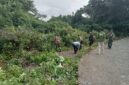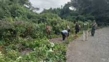Anggota Koramil Bersama Warga Kerja Bakti Bersihkan Saluran Air Dan Rumput Liar Di Pinggir Jalan