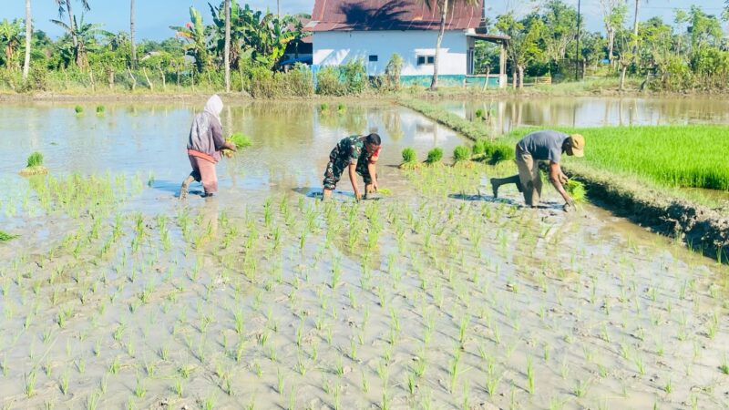 TAKALAR – kriminal24.com|Dukung Ketahanan Pangan, Babinsa Koramil 1426-06/Mapsu, Kodim 1426/Takalar, bantu Petani Tanam Padi. Seperti yang dilakukan oleh Babinsa Desa Pabbantangan Serka Nasaruddin melakukan pendampingan dengan membantu dalam menanam padi, bertempat di Desa Pabbantangan , Kecamatan Mappakasunggu, Kabupaten Takalar. Kamis (01/05/2025).