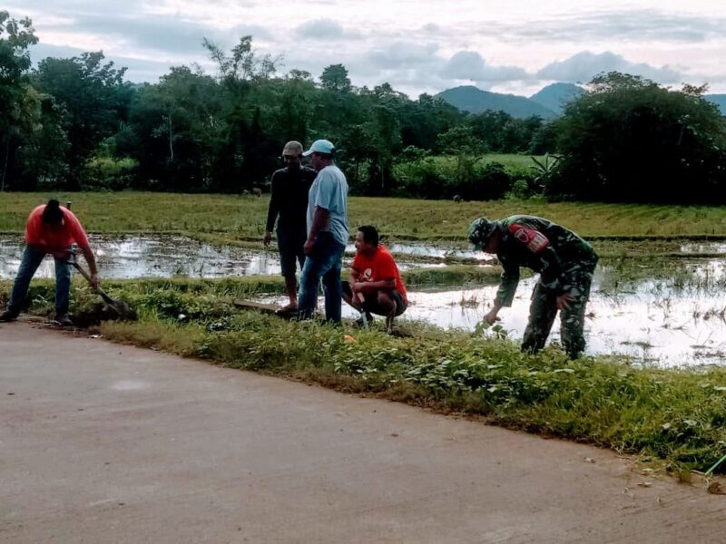 Personel Koramil 1426-02/Polsel Ajak Pemerintah Setempat Dan Warga Kerja Bakti Bersihkan Lingkungan