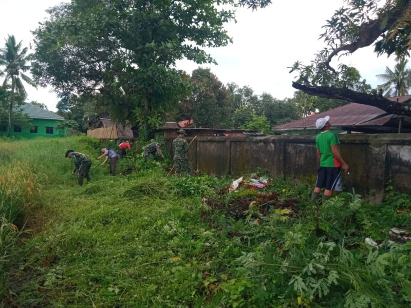 Antisipasi Banjir, Koramil 1426-06/Mapsu Bersama Warga Gelar Kerja Bakti Bersihkan Selokan