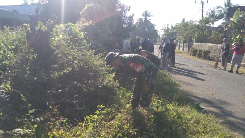 Koramil 1426-06/Mapsu Bersama Warga Kerja Bakti Bersihkan Saluran Air Dan Bahu Jalan