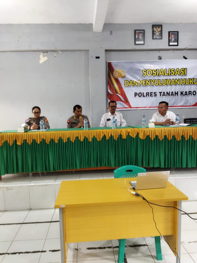 Pada Kegiatan ini dipimpin langsung oleh AKP. Ridwan Sasono, S.H., selaku Kasikum Polres Tanah Karo, serta didampingi oleh personil dan tim dari Seksi Hukum, acara penyuluhan Hukum ini menghadirkan dua Materi pentin g yakni :