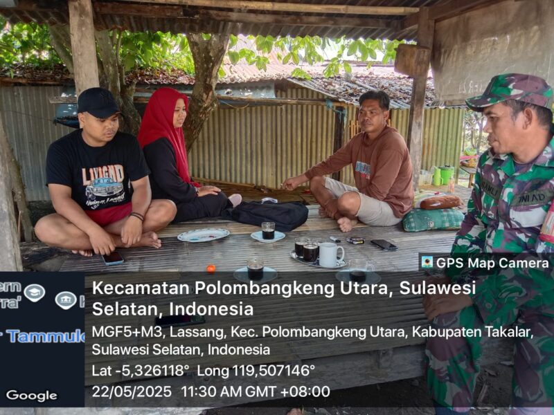 TAKALAR – kriminal24.com|Babinsa Koramil 1426-01/Polut, jajaran Kodim 1426/Takalar. Serda Ramli melaksanakan Komunikasi Sosial (Komsos) bersama dengan masyarakat Desa Lassang Kecamatan Polut Kabupaten Takalar dengan tujuan menciptakan kedekatan bersama warga binaan, Kamis (22/05/2025).