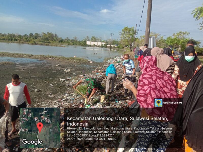 TAKALAR – kriminal24.com|Untuk mewujudkan lingkungan yang bersih, Babinsa Koramil 1426-03/Galut, Kodim 1426/Takalar Desa Sampulungan Sertu Hidayatullah bersama Pemerintah Desa dan warga melaksanakan kerja bakti pembersihan pinggir jalan dari tumpukan sampah di Desa Sampulungan, Kecamatan Galesong Utara, Kabupaten Takalar, Sabtu (24/05/2025).