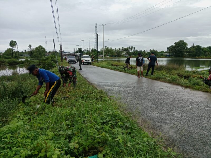 TAKALAR – kriminal24.com|Dalam rangka menjaga kebersihan lingkungan, Personel Koramil 1426-05/Marbo Kodim 1426/Takalar mengajak warga melaksanakan kerja bakti pembersihan pinggir jalan poros Desa Tope Jawa Kecamatan Mangarabombang Kabupaten Takalar. Senin, 02/06/2025.