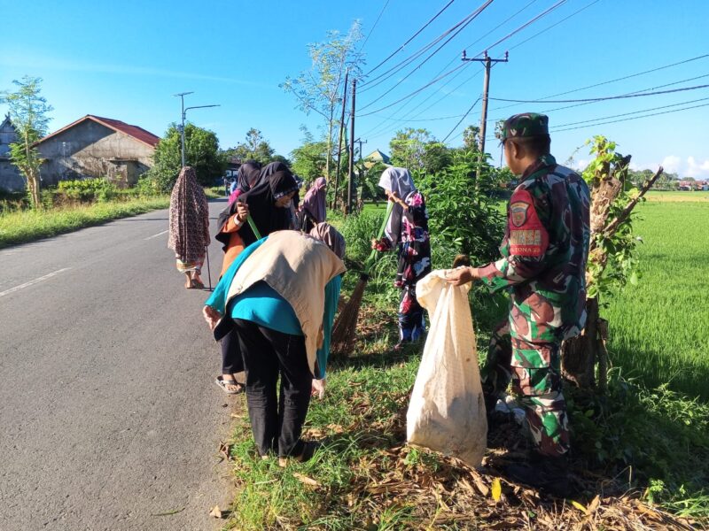 Peduli Kebersihan Babinsa Koramil 1426-06/Mapsu Ajak Masyarakat Kerja Bakti Bersihkan Bahu Jalan