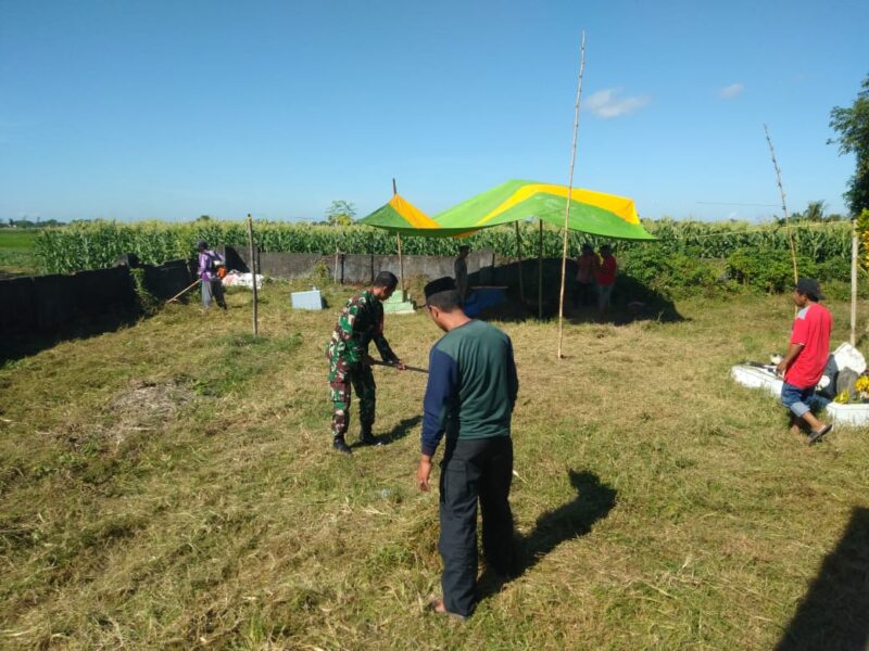 Personel Koramil 1426-04/Galesong Bersama Warga Kerja Bakti Bersihkan TMP