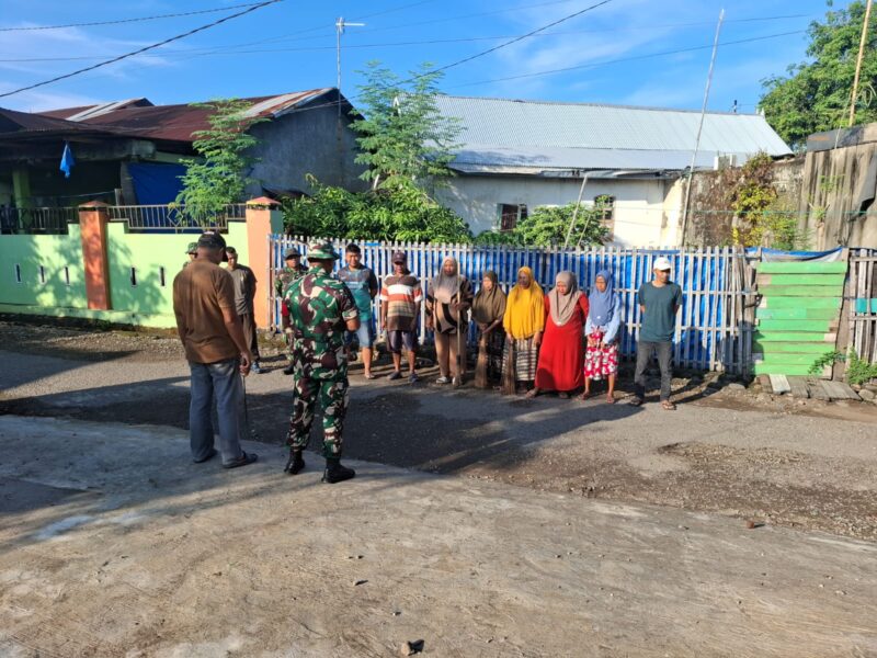 Personel Koramil mengajak warga untuk aktif dan menjadi motivator penggerak masyarakat untuk gotong royong peduli terhadap kebersihan lingkungan. Kegiatan kerja bakti tersebut fokus pada pembersihan selokan akibat banyak sampah yang mengotori.