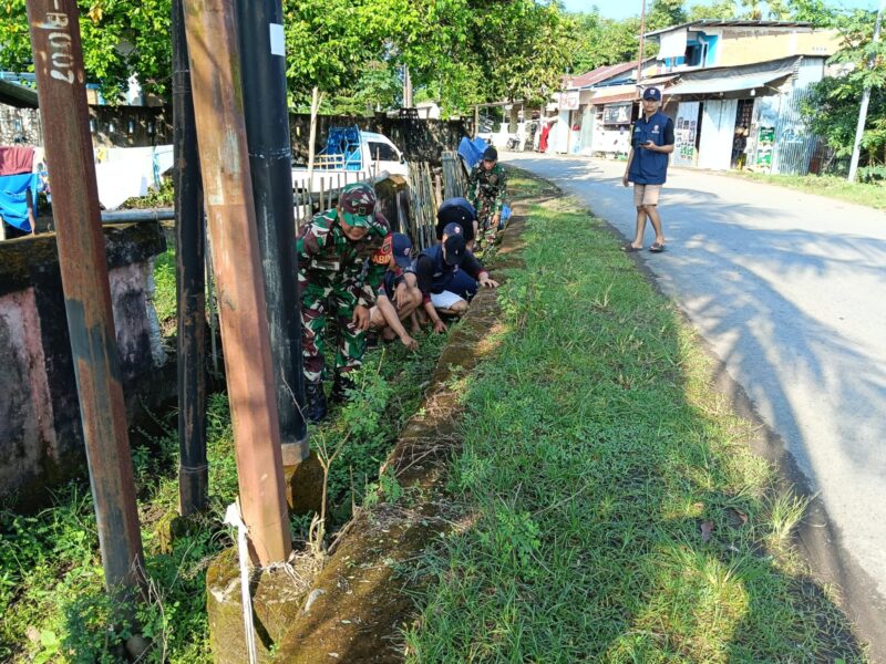 Koramil 1426-06/Mapsu Bersama Warga Kerja Bakti Bersihkan Lingkungan