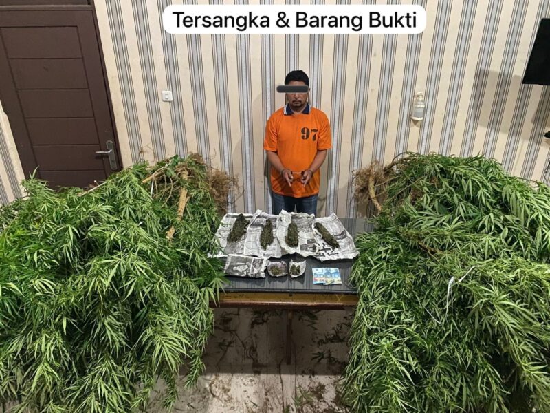 Kasus ini terungkap setelah petugas menangkap seorang pria berinisial SS (32) di pinggir jalan Desa Lingga sekitar pukul 19.30 WIB. Dari hasil penggeledahan, ditemukan satu bungkus ganja basah seberat 66,78 gram yang dibalut kertas koran serta satu kantong plastik berwarna biru.