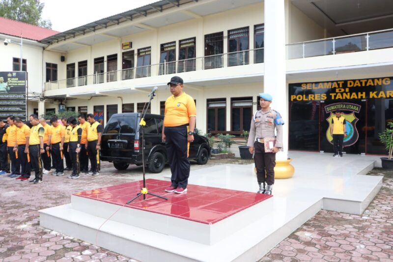 Kabanjahe, 17 Juni 2025 — Dalam rangka memperingati Hari Bhayangkara ke-79, Polres Tanah Karo menyelenggarakan upacara pembukaan perlombaan olahraga internal yang dipimpin langsung oleh Kapolres Tanah Karo, AKBP Eko Yulianto, S.H., S.I.K., M.M., M.Tr.Opsla. Kegiatan berlangsung pada Selasa pagi, 17 Juni 2025, pukul 08.00 WIB di halaman Mapolres Tanah Karo, Jalan Veteran Nomor 45, Kelurahan Kampung Dalam, Kecamatan Kabanjahe, Kabupaten Karo, Sumatera Utara.