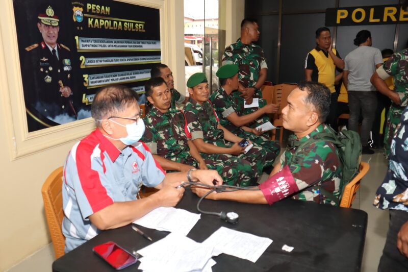 TAKALAR – kriminal24.com|Memperingati HUT Bhayangkara Ke-79 Tahun 2025, Perseonel Kodim 1426 Takalar ikut mendonorkan darahnya pada acara Bakti Kesehatan Donor Darah bertempat di Aula Mapolres Takalar Kelurahan Kalabbirang Kecamatan Pattallassang Kabupaten Takalar, Sul-Sel. Jum’at (20/06/2025)