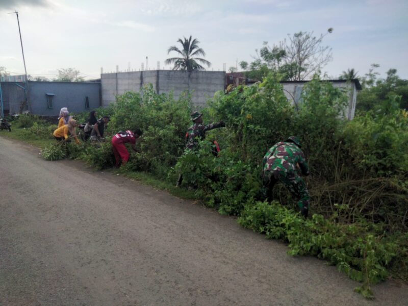 Cinta Kebersihan, Koramil 1426-05/Marbo Ajak Warga Kerja Bakti Bersihkan Pinggir Jalan