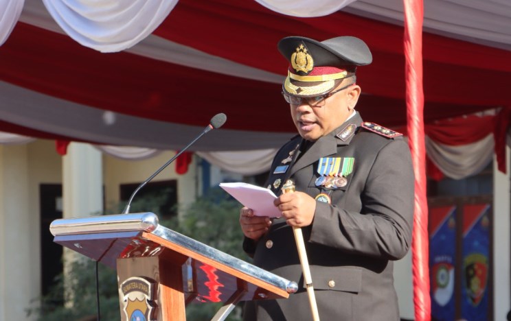Dalam amanat yang dibacakannya, Kapolres menyampaikan ucapan selamat Hari Bhayangkara kepada seluruh anggota Polri, khususnya jajaran Polres Tanah Karo.