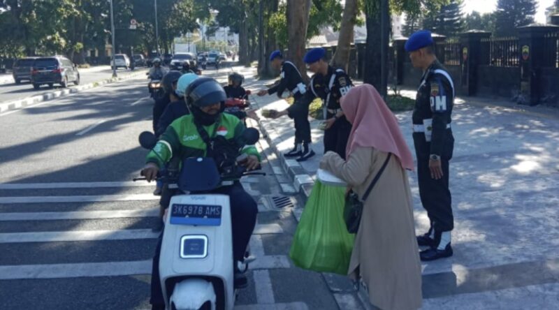 Kegiatan ini digelar di depan Markas Denpom I/5 Medan, Jalan Letjen Suprapto No. 4, di mana para personel membagikan paket makanan kepada masyarakat umum yang melintas maupun warga sekitar.