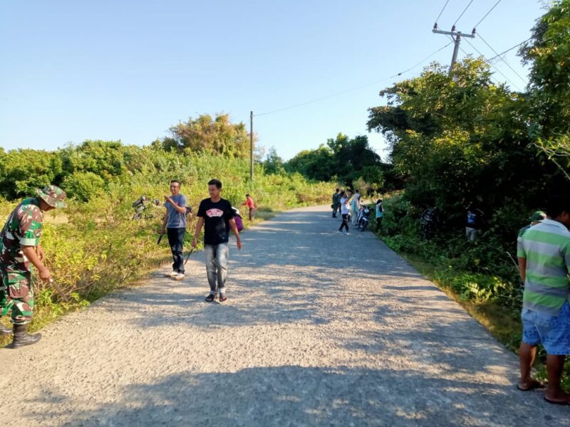 Jaga Kebersihan, Koramil 1426-05/Marbo Ajak Warga Kerja Bakti Bersihkan Pinggir Jalan