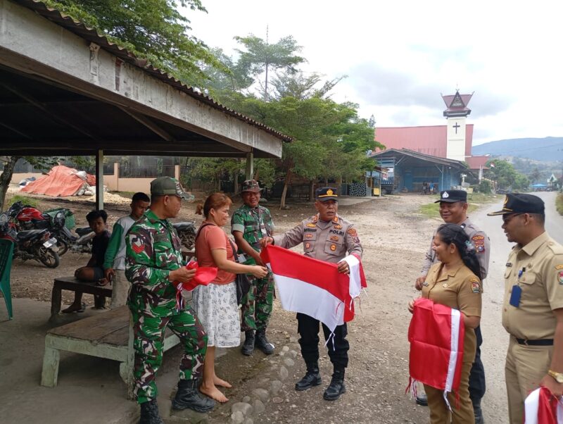 Dalam hal ini, Masyarakat tampak antusias menerima bendera Merah Putih, sambil menyampaikan ucapan terima kasih atas kepedulian Polri dan pemerintah setempat.