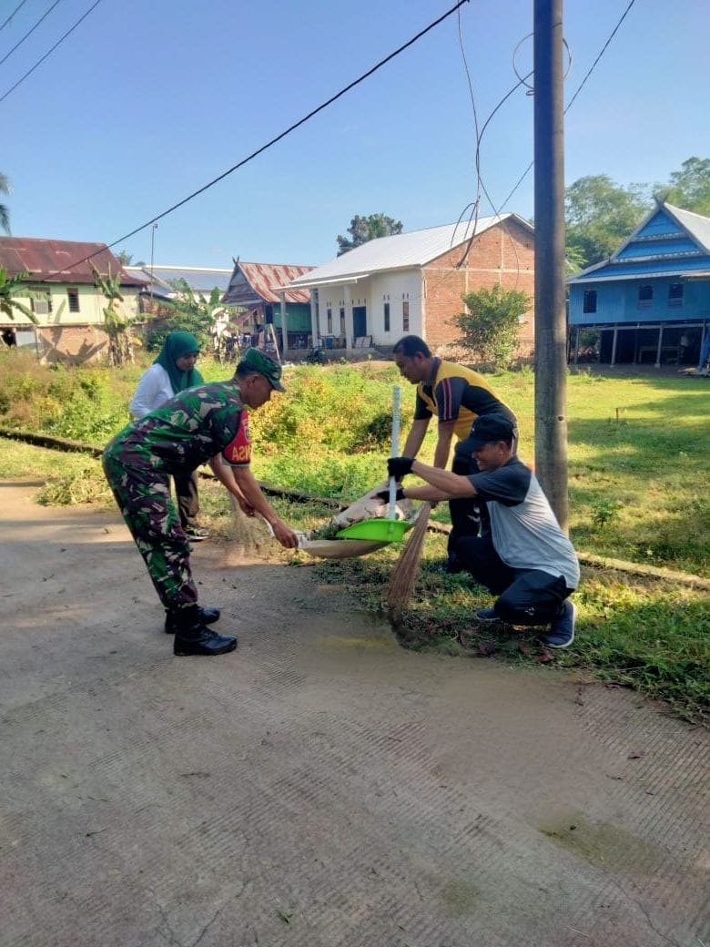 “Babinsa mengatakan bahwa kegiatan kerja bakti seperti bersih-bersih saluran air dan bahu jalan merupakan wujud kepedulian TNI dalam hal kebersihan lingkungan di wilayah teritorialnya, dan sebagai ajang silaturahmi antara Babinsa dan masyarakat, “ungkapnya.