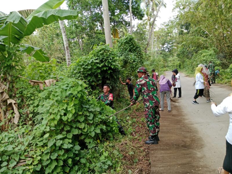 Budayakan Gotong Royong Bersama Warga, Koramil 1426-07/Pattallassang Bersihkan Lingkungan