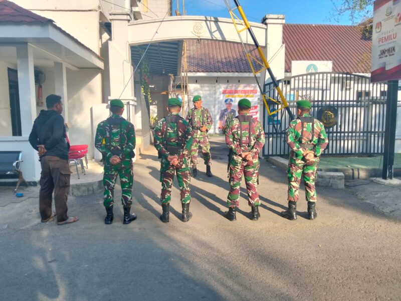 Personel TNI Dari Kodim Takalar Tampak Sedang Berjaga Dibeberapa Tempat Obyek Vital