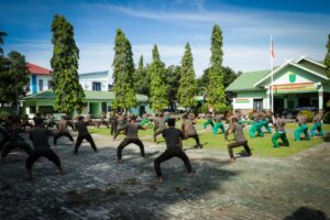 TAKALAR – kriminal24.com|Perkuat kedisplinan dan tingkatkan keterampilan bela diri, Para Prajurit Komando Distrik Militer (Kodim) 1426/Takalar mengikuti latihan Pencak Silat Militer (PSM) di Halaman Markas Kodim, Jl. Fitrah Nomor 9, Kel. Kalabbirang, Kec Pattallassang Kab. Takalar yang dipimpin langsung oleh Letda Inf Rajab, Serda Safaruddin, dan Serda Sahrul. Jum’at, 26/09/2025.
