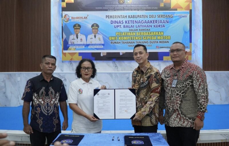 Kepala Rutan Kelas I Medan, Andi Surya, dalam sambutannya menyampaikan apresiasi atas dukungan Dinas Ketenagakerjaan Kabupaten Deli Serdang yang telah membuka kesempatan bagi warga binaan untuk mengembangkan keterampilan produktif.