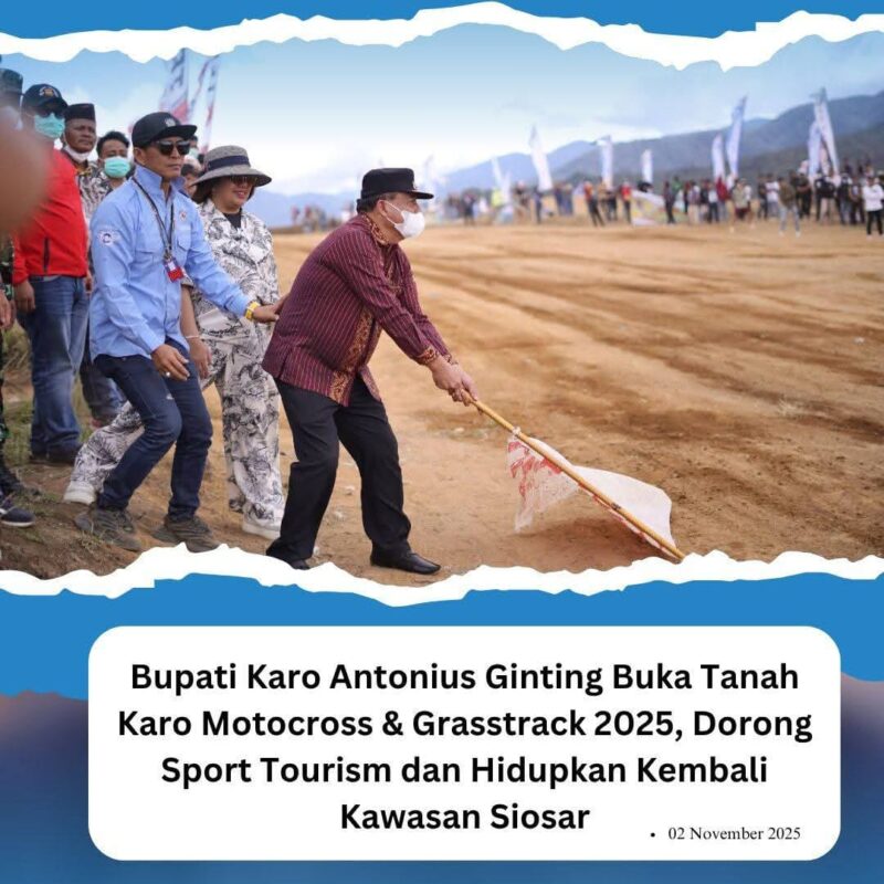 Karo – KRIMINAL 24 COM.  Pemerintah Daerah Kabupaten Karo, melalui Bupati Karo, Brigjen Pol (Purn) Dr. dr. Antonius Ginting, Sp.OG., M.Kes., secara resmi membuka Tanah Karo Motocross & Grasstrack 2025, pembukaan perlombaan tersebut, dilaksanakan pada hari Minggu 02 November 2025, di kawasan Siosar, Kecamatan Tigapanah, Kabupaten Karo, Provinsi Sumatera Utara.