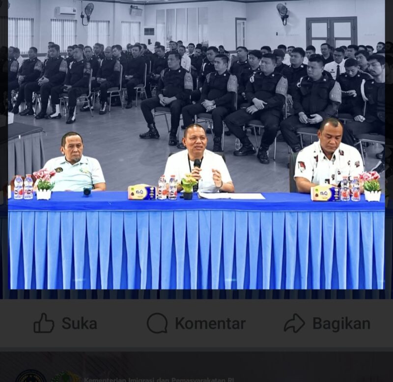 Kepala Lembaga Pemasyarakatan (Lapas) Kelas I Medan, Herry Suhasmin, memimpin rapat penguatan tugas pengamanan pada Sabtu (15/11/2025), bertempat di Aula Lapas Kelas I Medan.