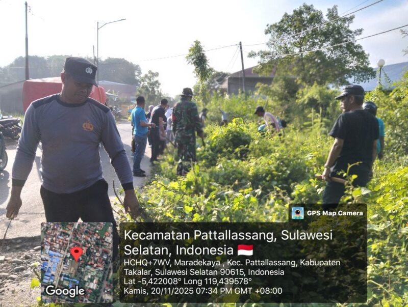 TAKALAR – kriminal24.com|Dalam rangka mewujudkan kebersihan lingkungan, Babinsa Koramil 1426-07/Pattallassang, Kodim 1426/Takalar Serka Hamzah mengajak warga melaksanakan kerja bakti pembersihan lingkungan di wilayah binaannya di Kelurahan Maradekaya Kecamatan Pattallassang Kabupaten Takalar. Kamis, 20/11/2025.