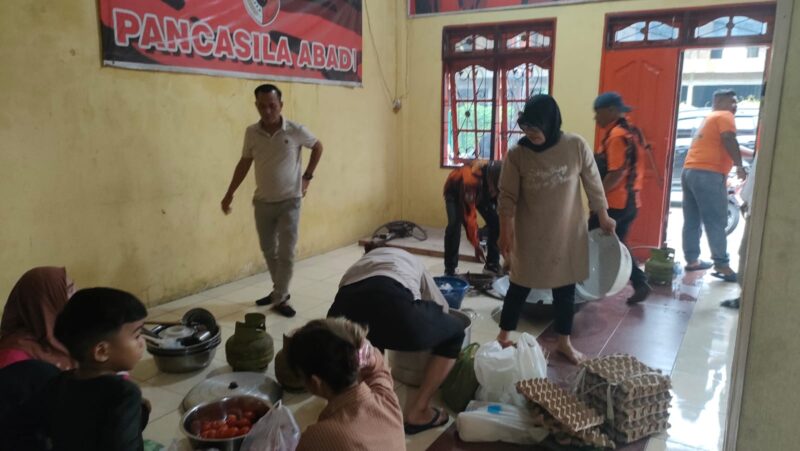 Dalam kegiatan kemanusiaan ini, PAC PP Medan Sunggal menyediakan makanan siap saji bagi warga yang rumahnya terendam air.