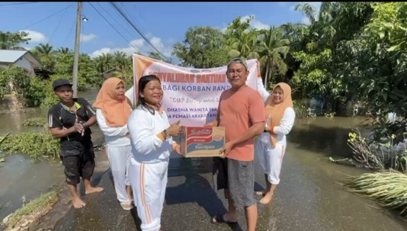 Keluarga Besar Dharma Wanita Persatuan Lapas Kelas IIA Binjai menunjukkan kepedulian mereka terhadap korban banjir dengan melakukan penyaluran bantuan sosial.