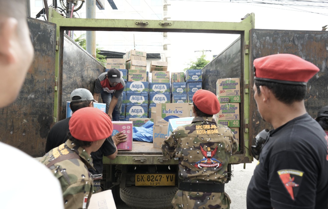 Sektretaris DPC GRIB Jaya Kota Medan Toyib Marbun menjelaskan bantuan yang dibawa merupakan kebutuhan dasar yang paling mendesak bagi para korban banjir.