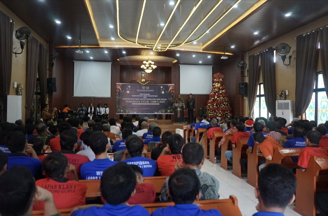 Dalam rangka memperingati Hari Raya Natal Tahun 2025, Kantor Wilayah Direktorat Jenderal Pemasyarakatan Sumatera Utara melaksanakan pemberian Remisi Khusus dan Pengurangan Masa Pidana kepada Narapidana dan Anak Binaan yang telah memenuhi persyaratan sesuai ketentuan peraturan perundang-undangan.