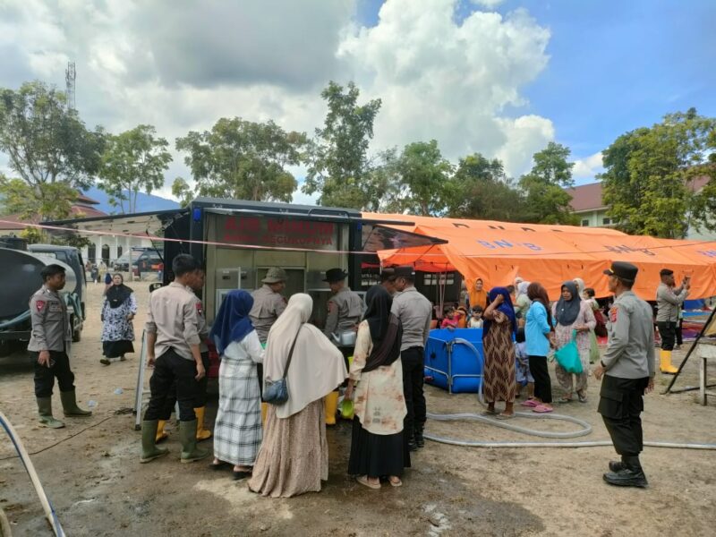 Kapolres Gayo Lues AKBP Hyrowo, S.I.K. menyampaikan bahwa penyediaan air bersih siap minum ini merupakan bentuk nyata kehadiran Polri dalam membantu masyarakat yang terdampak.