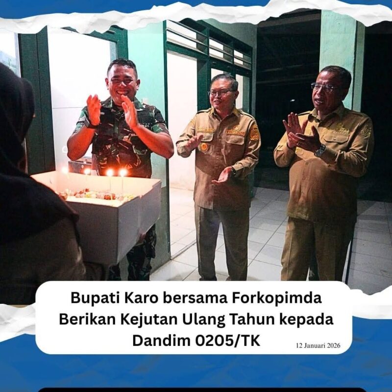 Lebih lanjutnya, Bupati Karo, Brigjen Pol (Purn) Dr. dr. Antonius Ginting, Sp.,OG.,M.Kes., juga menyampaikan ucapan selamat ulang tahun ke-42 kepada Dandim 0205/Tanah Karo, Letkol Inf. Robert Panjaitan. ia juga berharap sinergi dan koordinasi antara TNI, Pemerintah Daerah, dan seluruh unsur Forkopimda dapat terus terjaga dengan baik demi terciptanya keamanan, ketertiban, dan kesejahteraan masyarakat Kabupaten Karo,”Pungkasnya.