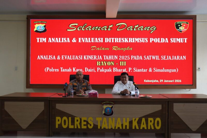 Karo – KRIMINAL 24 COM.  Polres Tanah Karo menerima kegiatan kunjungan kerja dari Unit Supervisi dari Direktorat Reserse Kriminal Khusus (Ditreskrimsus) Polda Sumatera Utara, dalam rangka analisa dan evaluasi (Anev) kinerja tahun 2025 pada satuan wilayah jajaran Rayon 3.