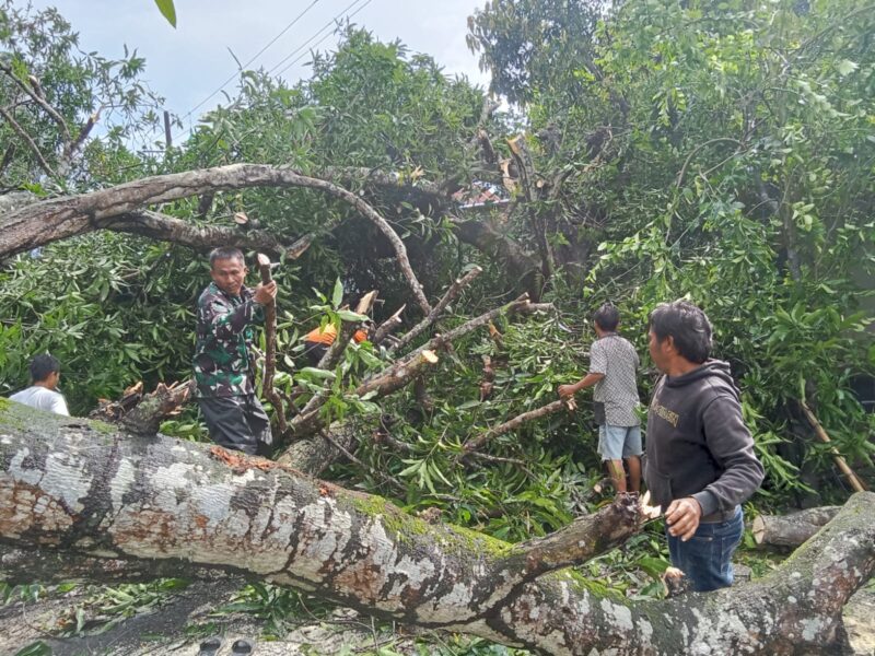 TAKALAR – kriminal24.com|Babinsa Koramil 1426-07/Pattallassang Kodim 1426/Takalar Serka Herman, SE bersama warga masyarakat bahu membahu membantu membersihkan pohon mangga yang tumbang menimpa rumah warga milik Sdr. Firmansyah 35 tahun yang berlokasi di Kelurahan Sombala Bella Kecamatan Pattallassang Kabupaten Takalar, Rabu (04/02/2026)