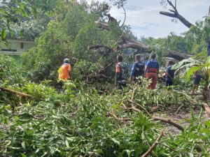 Babinsa bersama warga masyarakat sekitarnya bergerak cepat membantu membersihkan pohon yang tumbang dengan menggunakan mesin senso dan peralatan seadanya. Dengan adanya peristiwa ini, Babinsa menyampaikan bahwa sudah menjadi tugas dan tanggung jawab kami sebagai Babinsa untuk berada di tengah-tengah kesulitan warga seperti sekarang ini melakukan evakuasi pohon yang menimpa rumah warga, “ucapnya