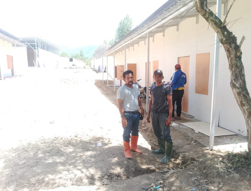 Ali Sadikin, selaku rekanan yang menangani proyek pembangunan Huntara, menjelaskan bahwa pihaknya mempercepat proses pembangunan sebagai bentuk tanggung jawab moral dan profesional untuk segera memenuhi kebutuhan tempat tinggal sementara bagi masyarakat yang membutuhkan. Dalam proses pengerjaan, pihaknya mengerahkan sejumlah tenaga kerja terlatih dan memastikan ketersediaan material bangunan secara berkelanjutan agar tidak mengganggu ritme kerja di lapangan.