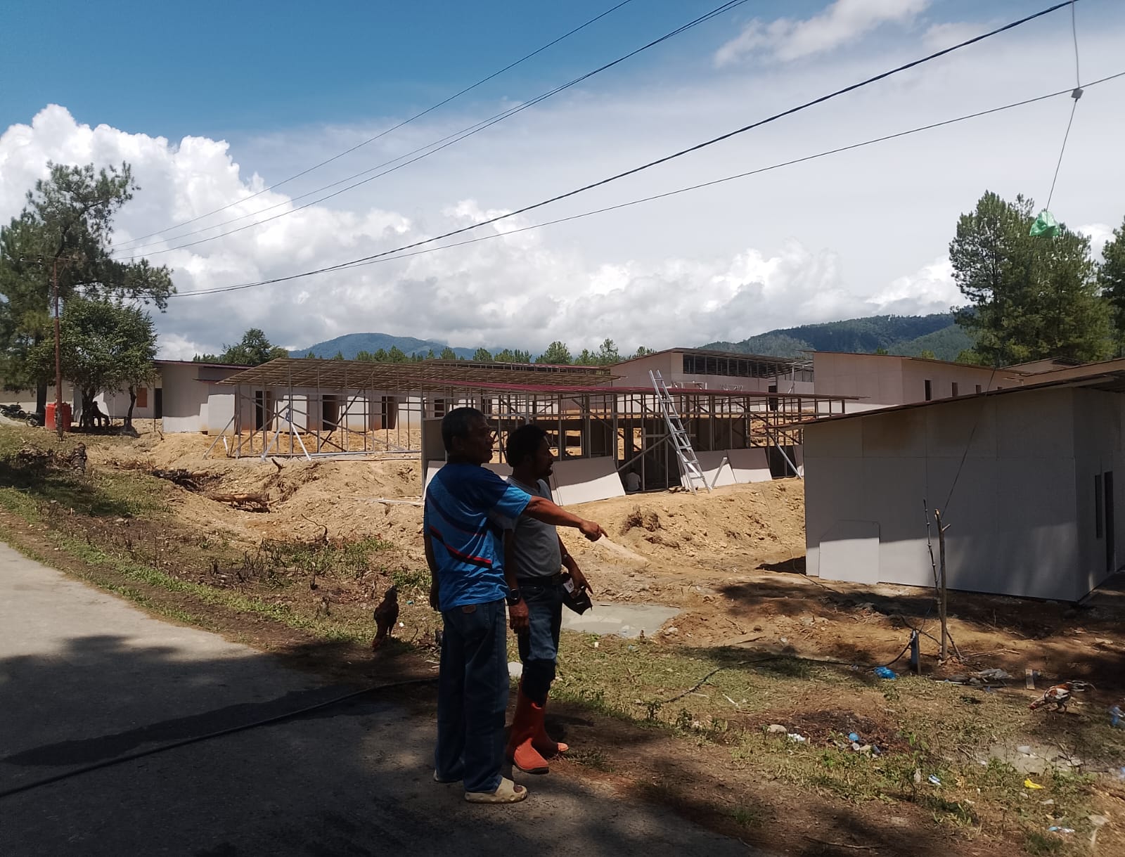Pembangunan Huntara dimulai dengan pemerataan lahan dan dikerjakan secara intensif sejak hari pertama. Dalam 18 hari kerja, struktur utama seluruh unit sudah berdiri dan hanya menyisakan beberapa bagian untuk proses penyempurnaan akhir. Pengerjaan dilakukan oleh pihak rekanan secara terorganisasi, dengan pengawalan ketat terhadap mutu bangunan dan waktu pelaksanaan agar sesuai dengan rencana yang telah disusun sebelumnya.