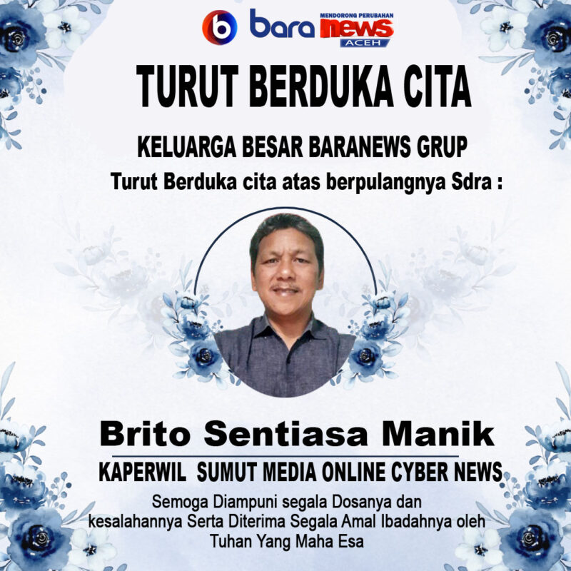Kepergian Brito Sentiasa Manik meninggalkan rasa kehilangan yang mendalam, tidak hanya bagi keluarga yang ditinggalkan, tetapi juga bagi seluruh jajaran keluarga besar Media Cyber News dan Baranews Grup. Semasa hidup, almarhum dikenal sebagai pribadi yang berdedikasi tinggi, penuh semangat, dan selalu mengedepankan profesionalisme dalam menjalankan tugas jurnalistik. Integritas dan komitmennya dalam menyampaikan informasi yang akurat dan berimbang menjadi teladan bagi rekan-rekan seprofesi.