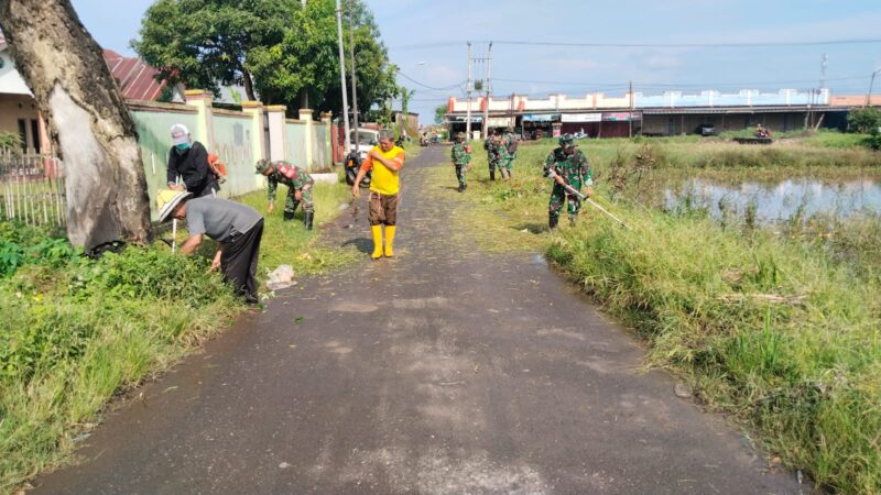 Motivator Kegiatan Gotong Royong, Koramil 1426-04/Galesong Ajak Warga Bersihkan Lingkungan