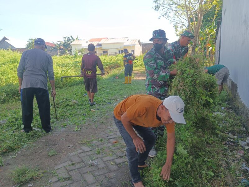 Koramil 1426-04/Galesong Bersama Masyarakat Kerja Bakti Bersihkan Pinggir Jalan