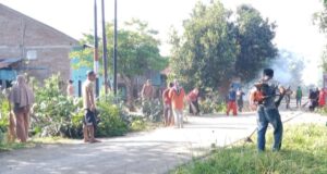 Dalam kegiatan ini, Personel Koramil bersama warga nampak semangat melakukan pekerjaan pembersihan selokan dan rumput liar di pinggir kiri kanan jalan serta merapikan ranting pohon agar terlihat lebih bersih.