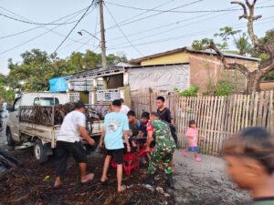 Mendengar ada kejadian tersebut Babinsa langsung bergerak cepat bersama pemadam kebakaran (Damkar) dan warga masyarakat setempat bergotong royong memadamkan api yang membakar rumah tersebut dan berusaha menyelamatkan barang-barang berharga, bersyukur setelah itu api bisa dipadamkan dengan cepat sehingga tidak merembet ke perumahan warga lainnya.