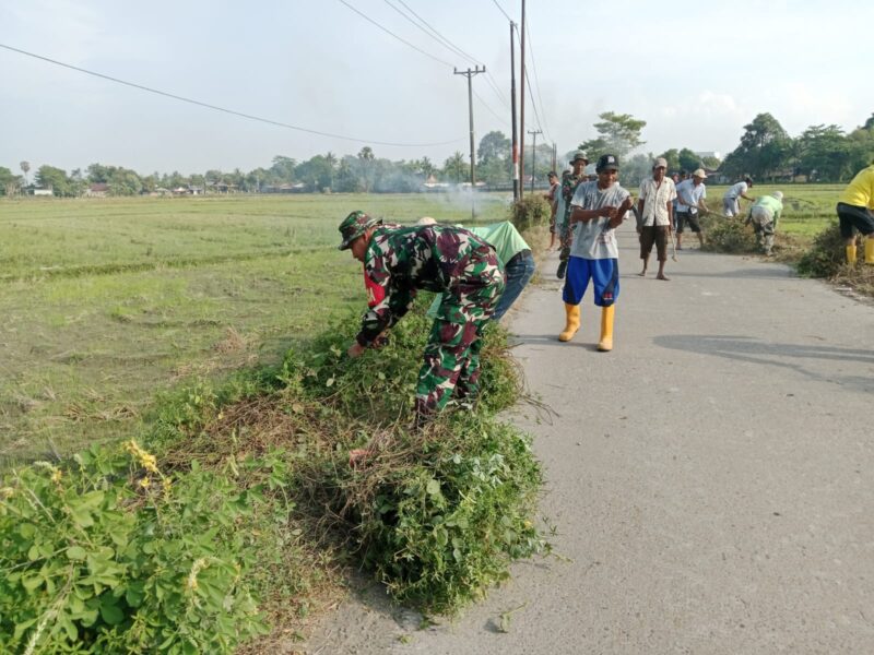 Peduli Lingkungan, TNI dan Warga Laikang Gotong Royong Bersihkan Jalan Desa Punaga