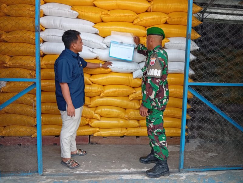 Piket Koramil 1426-01/Polut Rutin Cek Stok Beras di Gudang Bulog Malewang