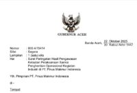 BANDA ACEH, (24/11/2025) Gubernur Aceh mengeluarkan dua surat peringatan resmi kepada dua perusahaan swasta yang bergerak di bidang pengolahan hasil hutan bukan kayu, yakni…